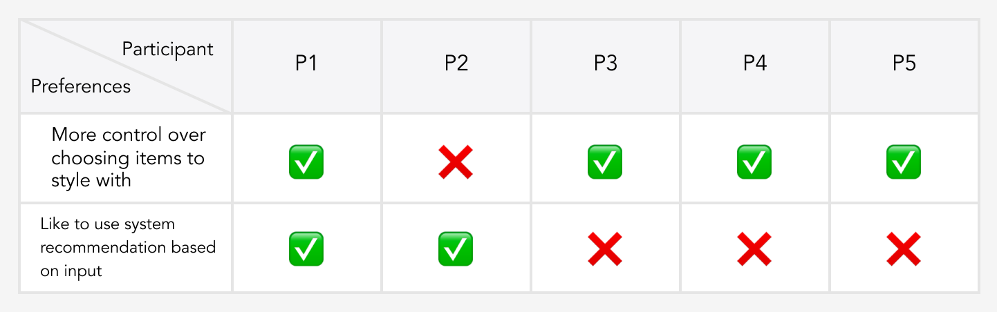 Users don’t have that much control & freedom in terms of selecting a specific product for styling. Fashion is subjective, and one user’s favorite outfit might be another user’s least favorite. Do users trust the algorithm to select an outfit based on their input?