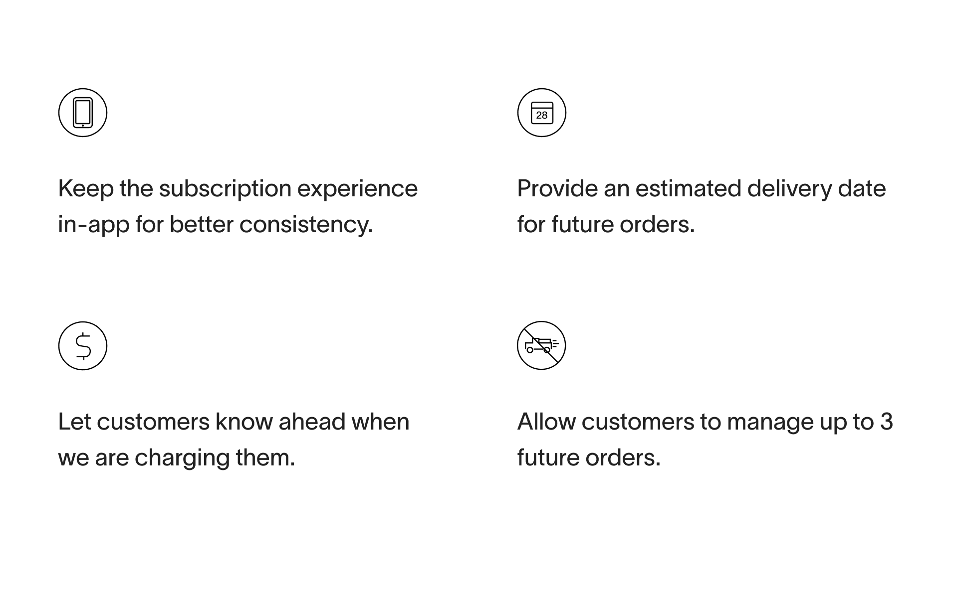 With my PM’s support, we advocated for creating a custom subscription management tool to enhance flexibility. Our goal was to empower customers with features like viewing upcoming orders and pausing subscriptions. Building our own tool was critical for a better user experience.