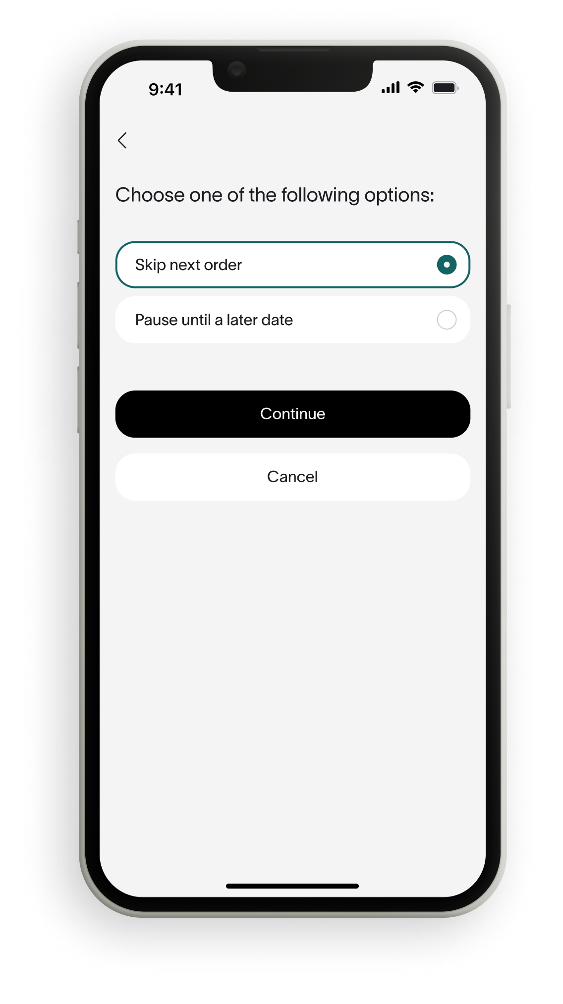 Let customers easily skip their next order or pause their subscription until a date they choose.