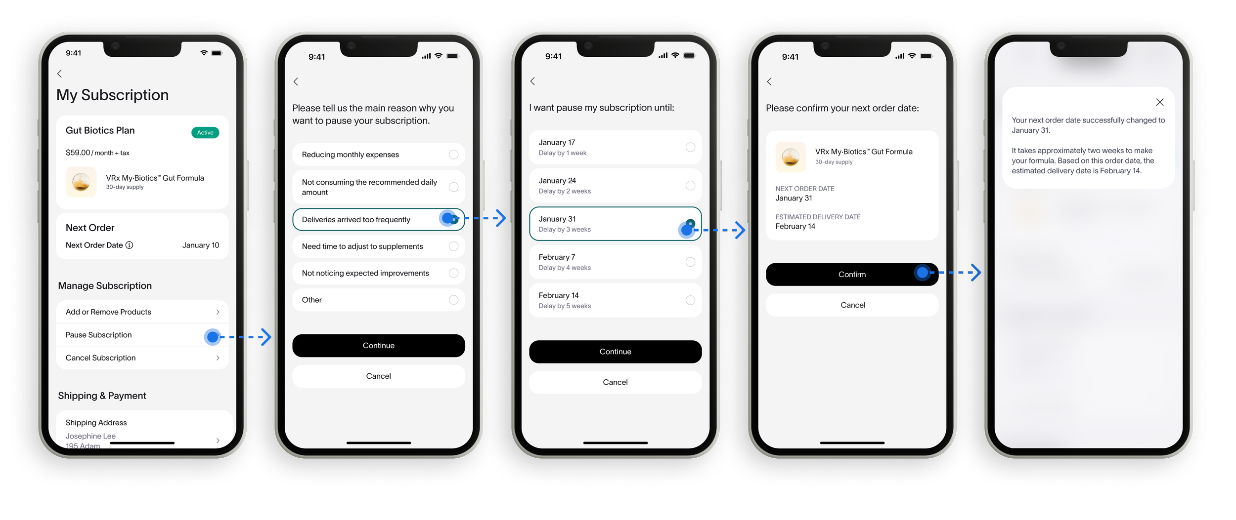 Let customers delay their next order by 1–5 weeks, as some ran out of supplements after a 30-day pause.