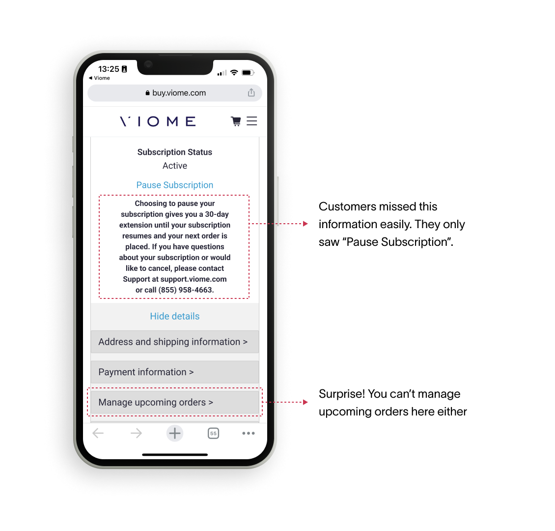 Customers didn’t have control over their supplements subscriptions, and they canceled their subscriptions.